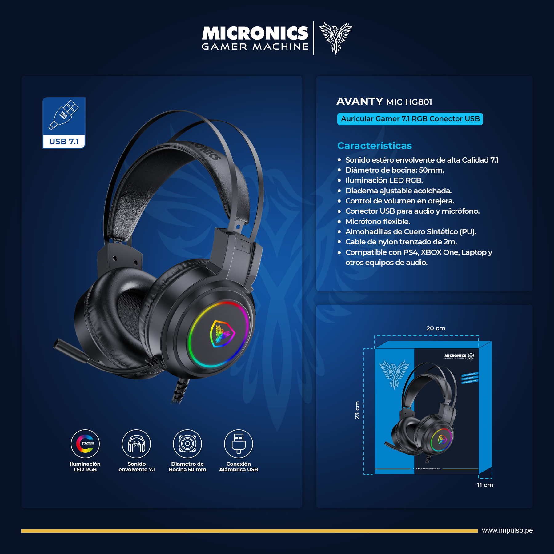 | Compatible con: PS4, XBOX One, Laptop y Otros Equipos de Audio. |